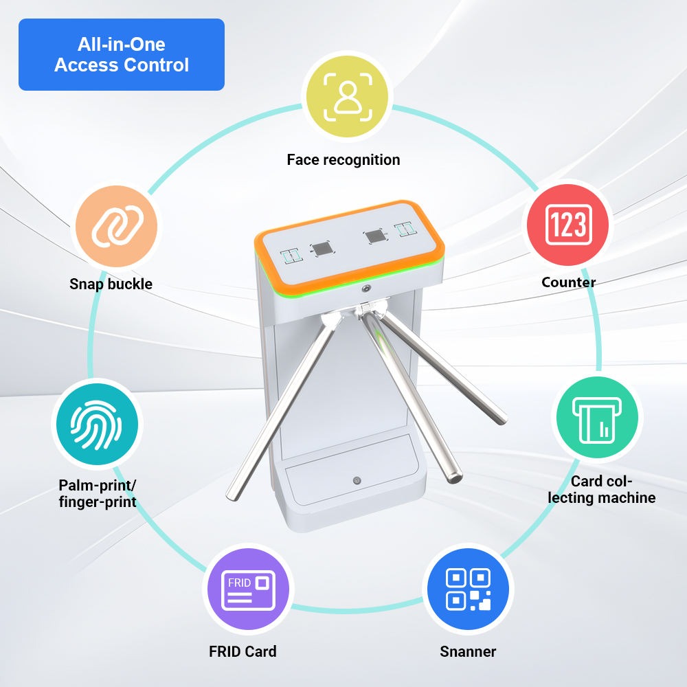 The Technospacio Tripod Turnstile-560 are compact and cost-effective entrance solutions. Designing for smooth and silent operation, reducing power consumption, wear and tear. It is suitable for areas with a high traffic. our stainless steel compact version , offer high operating reliability in a small casework, ideal for sites where space is an issue. By receiving a signal from the access control system, or pushing button, it allows the entry of one person in a time. Entering into different directions are electronically controlled. Default mode is to lock the mechanism until a valid authorization signal is received. If you want to set one side free, you can adjust the mechanism. In case of emergency, the horizontal arm will drop to allow free passage.
